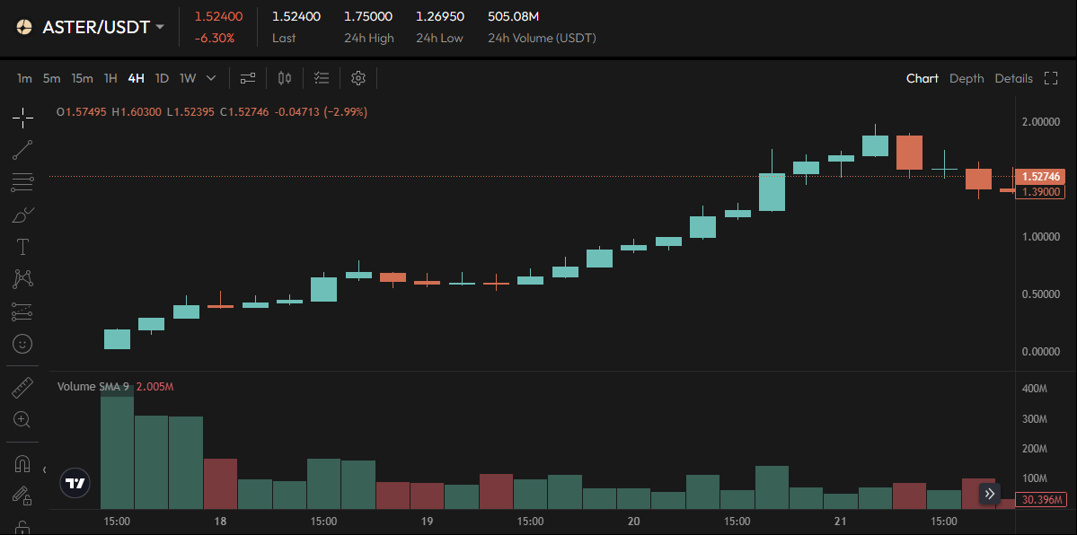 Loin de voir cela d’un bon œil, l’ex CEO de Binance tente de stopper l’hémorragie en portant caution morale et financière à ce projet développé sur sa propre blockchain. Et cela a largement contribué à la frénésie actuelle. La performance du jeton parle d’elle-même : après son lancement, l’ASTER a enregistré une ascension fulgurante, passant de près de 0.03 $ à près de 2 $ en quelques jours à peine, soit une multiplication par plus de 60 qui a récompensé les investisseurs les plus early.