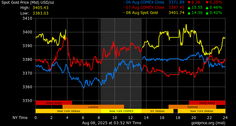 Selon les données du marché des contrats à terme Comex, le prix de l’or a atteint un record historique à 3 534,10 USD l’once le 8 août 2025, après qu’un courrier de l’U.S. Customs and Border Protection du 31 juillet a ainsi reclassé les lingots d’or de 1 kg dans une catégorie soumise à un tarif de 39 %, déclenchant une flambée des prix.